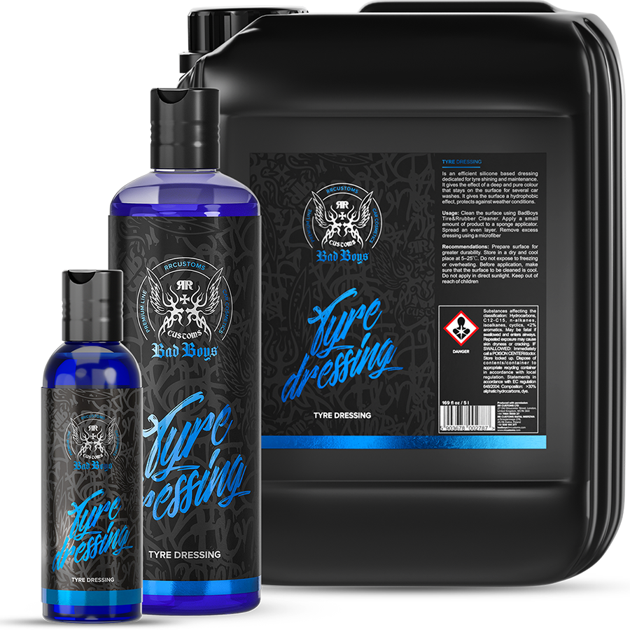 Is an efficient silicone based dressing dedicated for tyre shining and maintenance. It gives the effect of a deep and pure colour that stays on the surface for several car washes. It gives the surface a hydrophobic effect, protects against weather conditions.