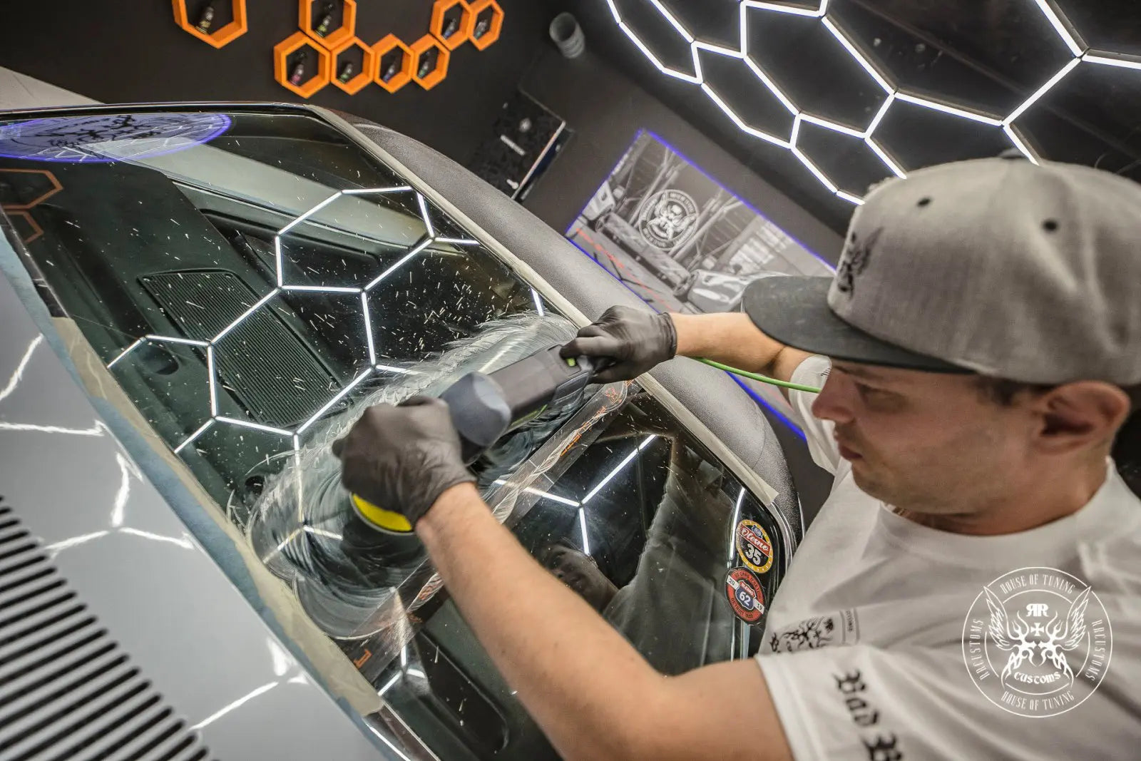 Is a professional polishing compound designed for polishing and cleaning car windows and glass. It effectively removes scratches, hard water stains, and road dirt while restoring gloss. This product is intended for professional detailers.
