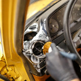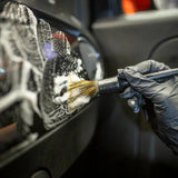 - apply a small amount of foam into a microfibre cloth or soft brush;