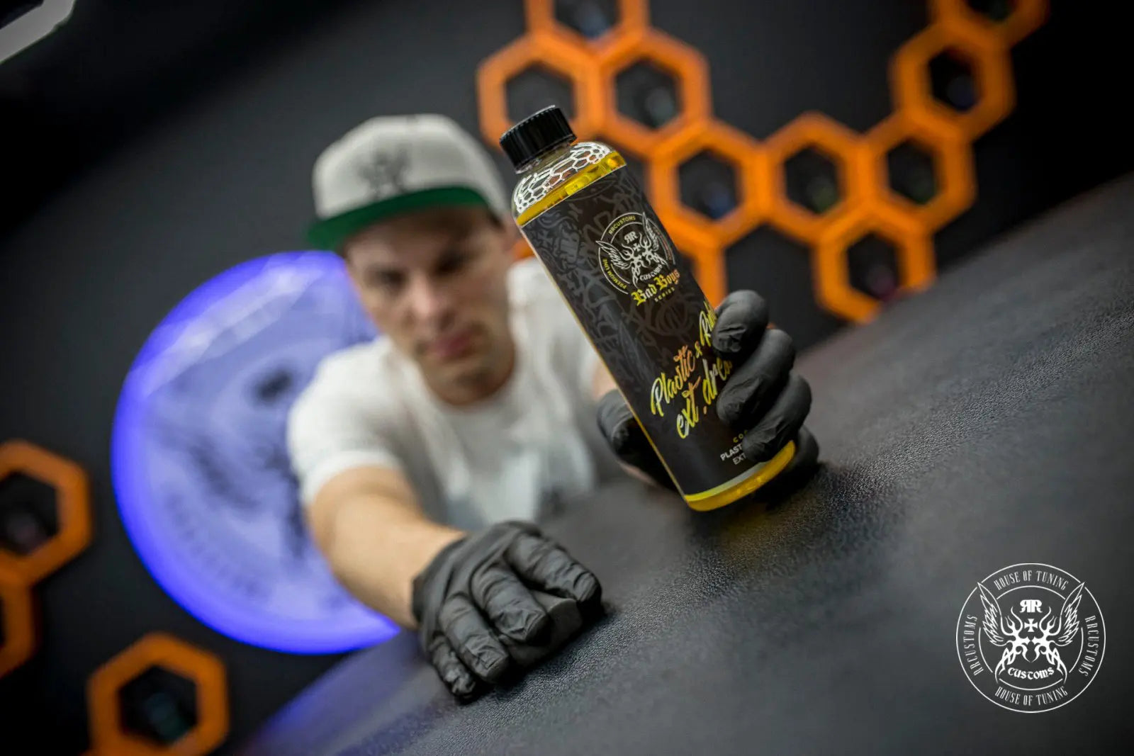 Thick silicone based product for maintenance of external plastic parts. It gives the effect of a deep and pure colour that stays on the plastic surface for several car washes. It gives the surface a hydrophobic effect.