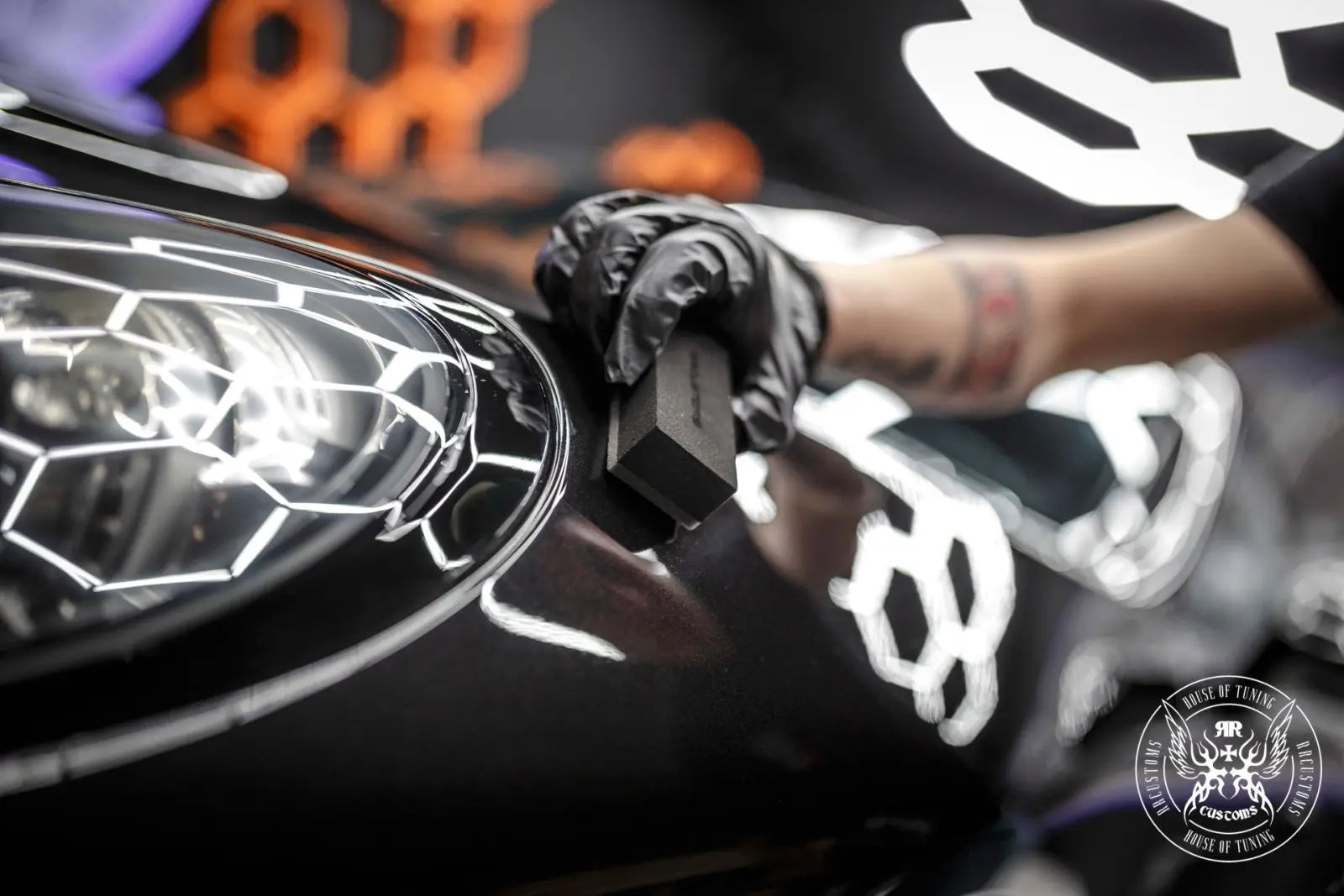 Prepare the paint surface by thorough and safe washing Then carry out a complete chemical-mechanical decontamination of the paintwork, Improve the paintwork with at least a one-step refreshment, eg Bad Boys One Step Polishing Paste, Before application, thoroughly degrease the paint surface with Bad Boys Panel Wipe (preferably twice), Apply the coat on a cool and dry paint surface, in a room with constant thermodynamic conditions without sunlight. Using a clean, dry applicator, apply a small amount of RRCeramic Coating Ultra and spread the product in a cross motion over the surface. Depending on the temperature, wait about 30-60 seconds to remove the excess coating with a proper microfiber (the coating quickly bonds with the paint surface, so a few additional microfiber towels will be needed), Use another microfiber to polish the surface until it is shiny without streaks (using an inspection flashlight will help), After the application is finished, leave the car in the optimal temperature environment (not less than + 10ยฐC) for 24 hours, for better โ€œbondingโ€ of the coating to the paint surface.